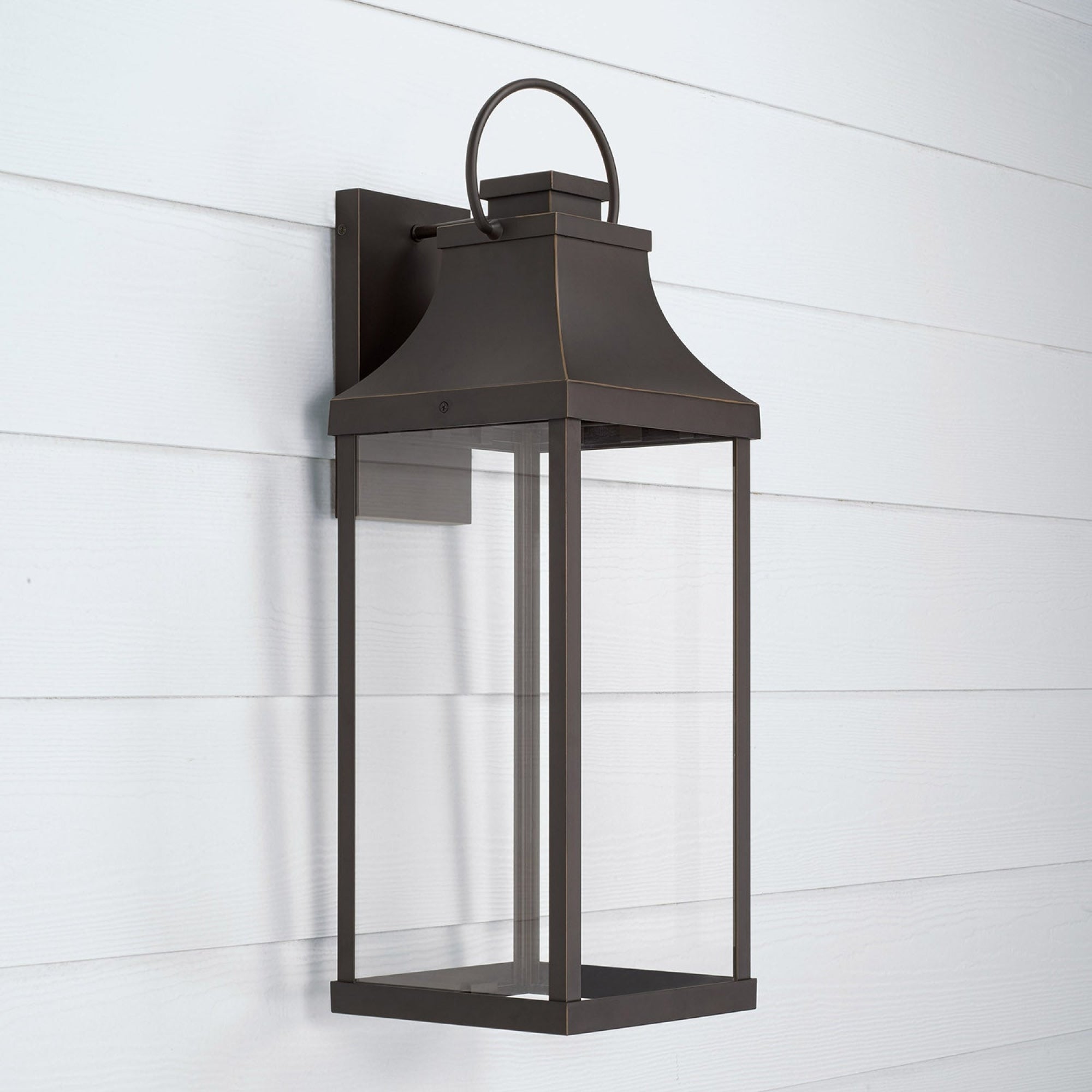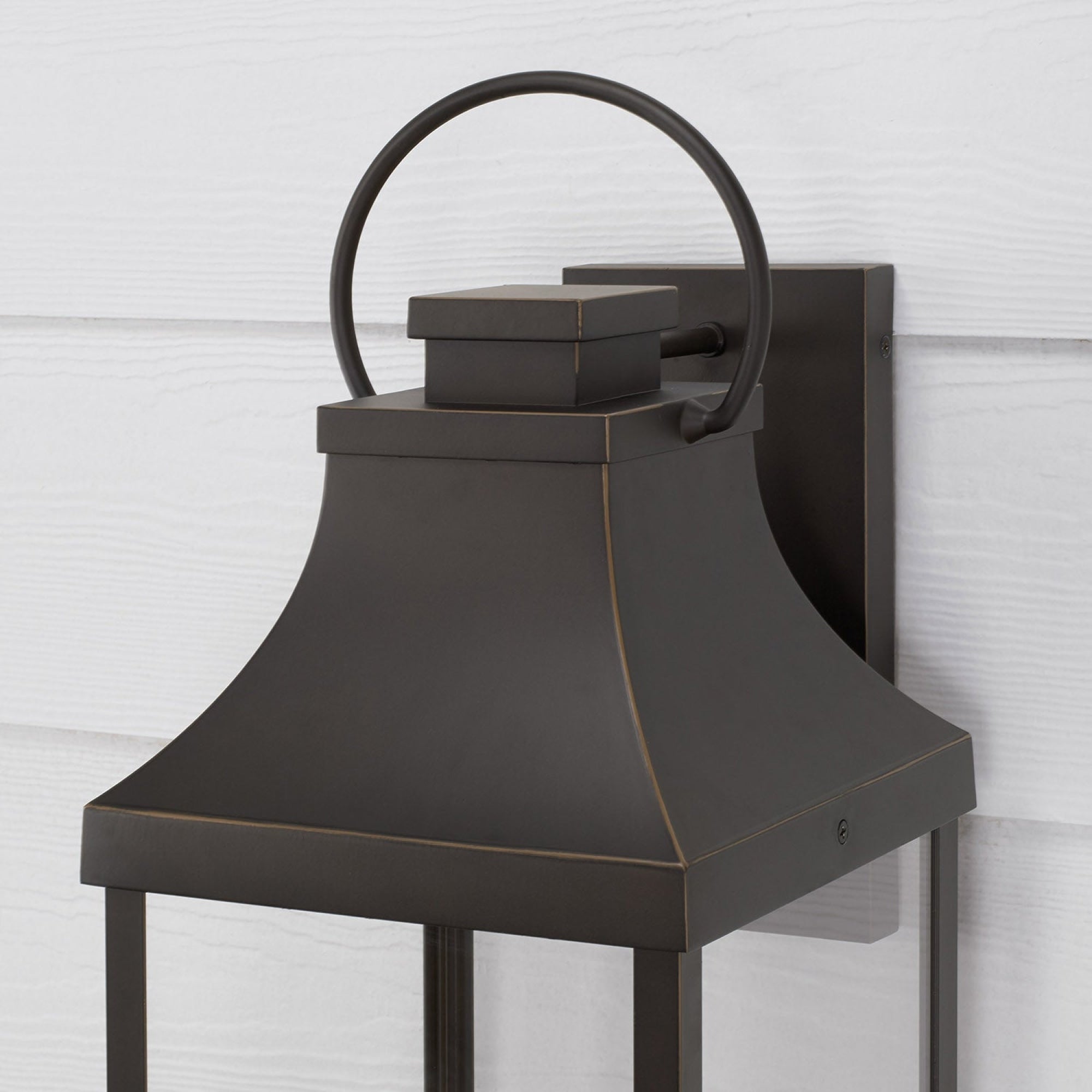 Transitional meets modern with the Bradford Low Light Extra Large Wall Lantern. The bold lines and an oversized ring in a Black finish adds classic curb appeal to your home. This fixture is designed for minimal light emissions and is part of our Rain or Shine Collection and backed by our five-year warranty.